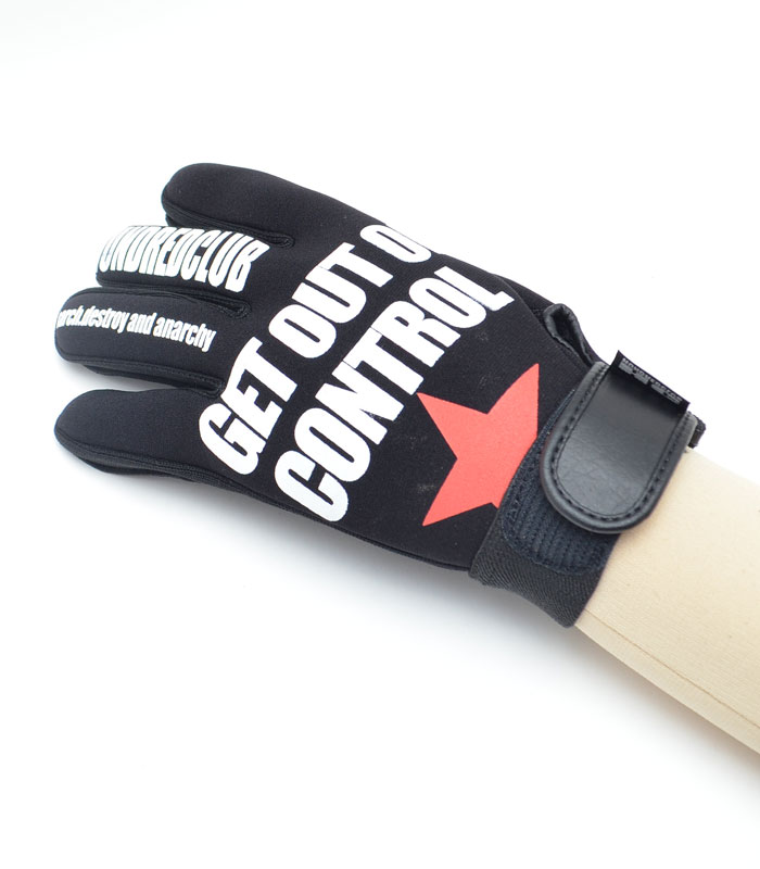 HUNDREDCLUBのロゴやメッセージプリントが目をひくグローブ。