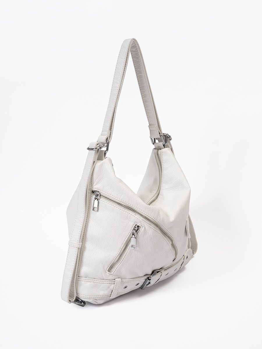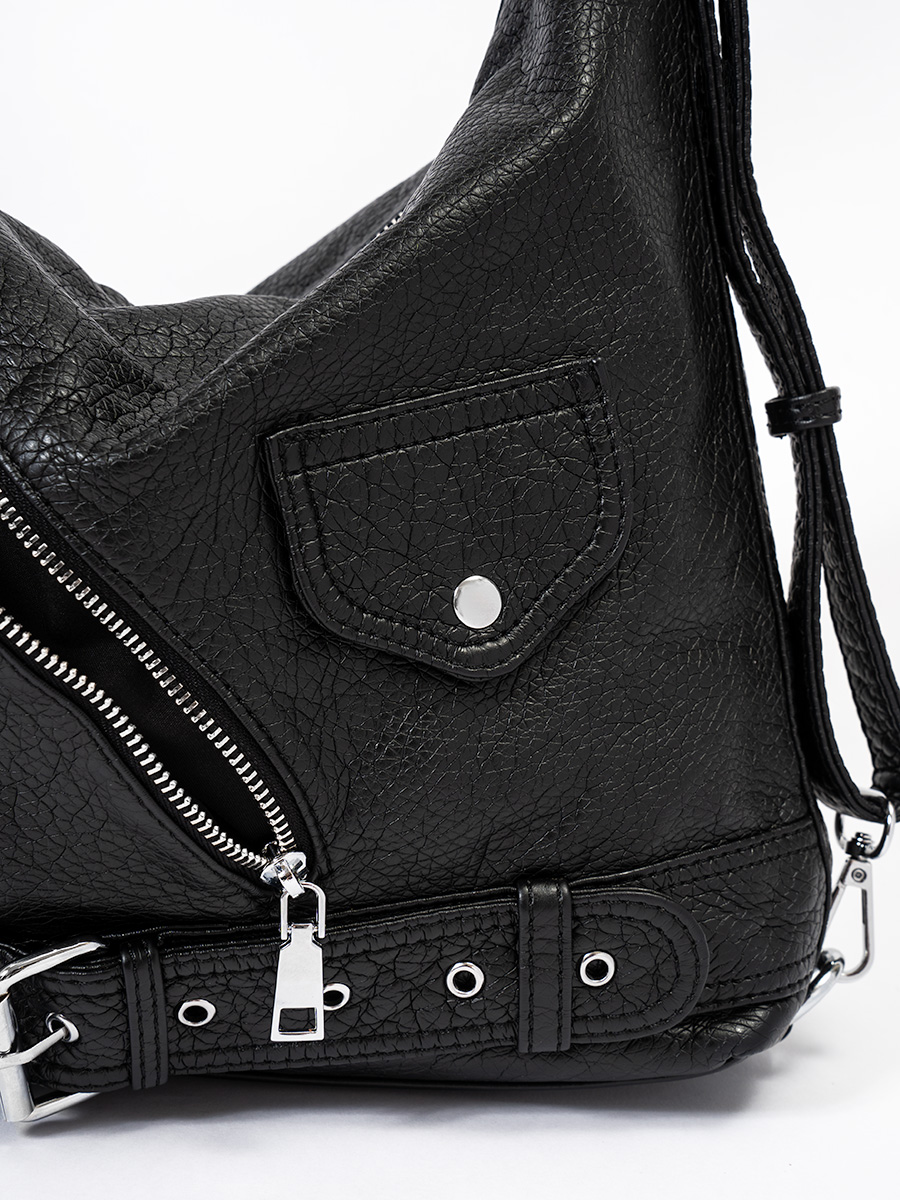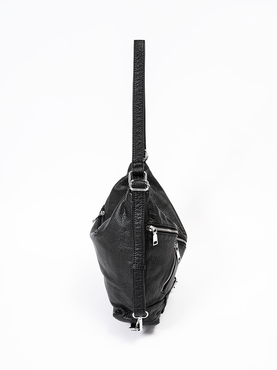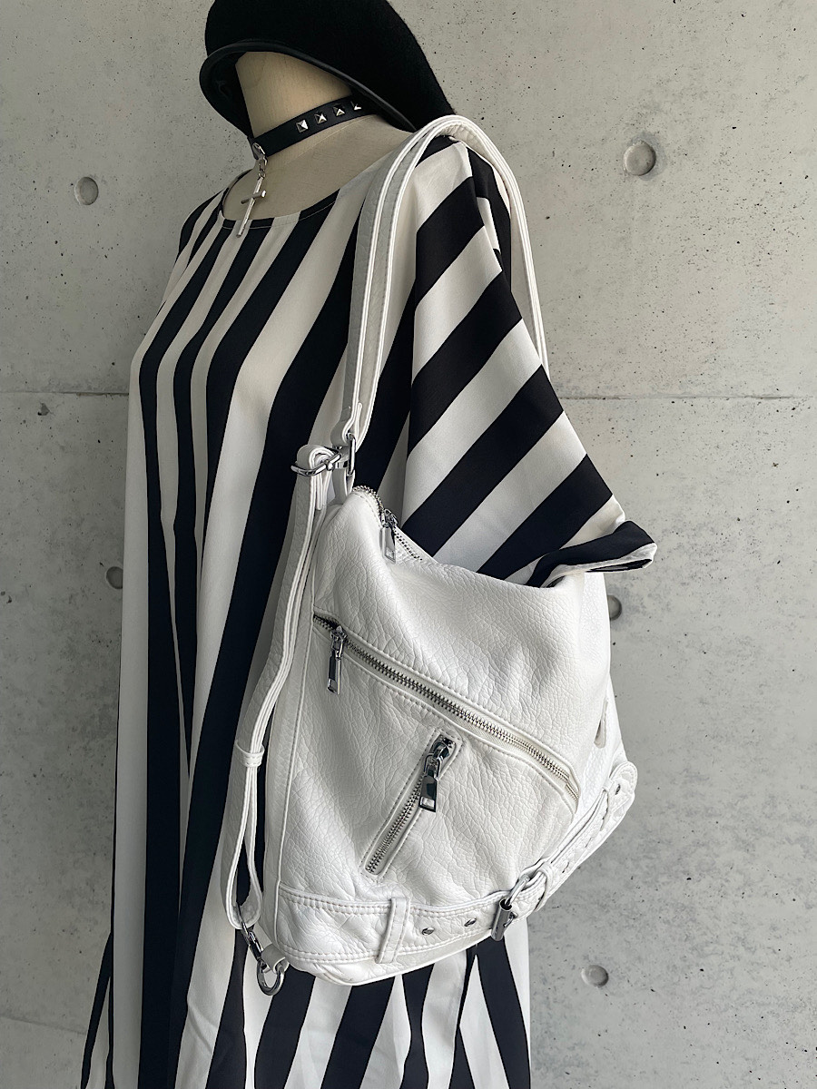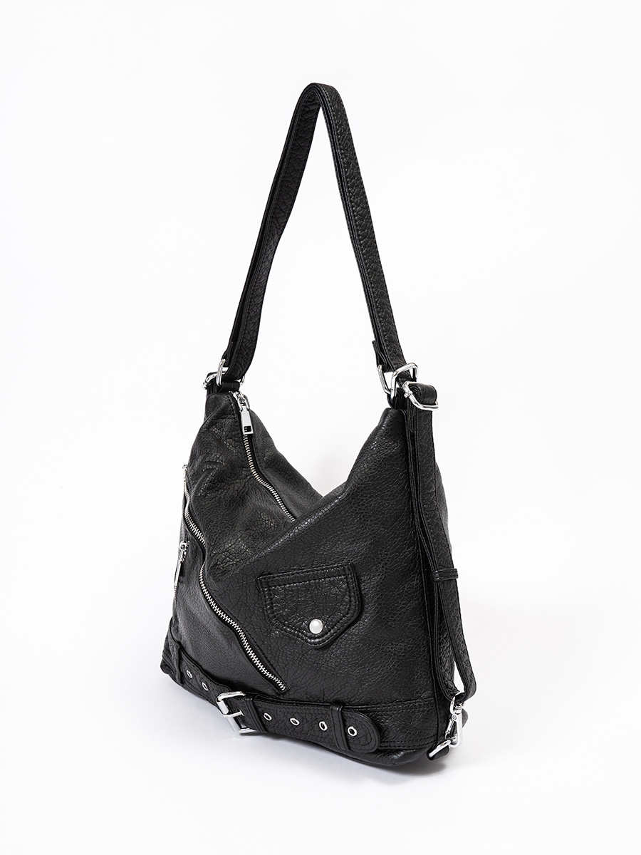 ライダースのディテールをつめこんだショルダーバッグ。
