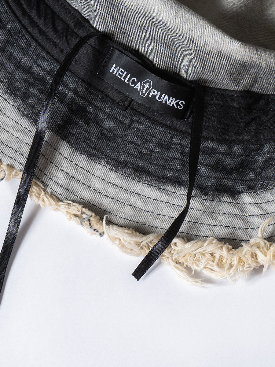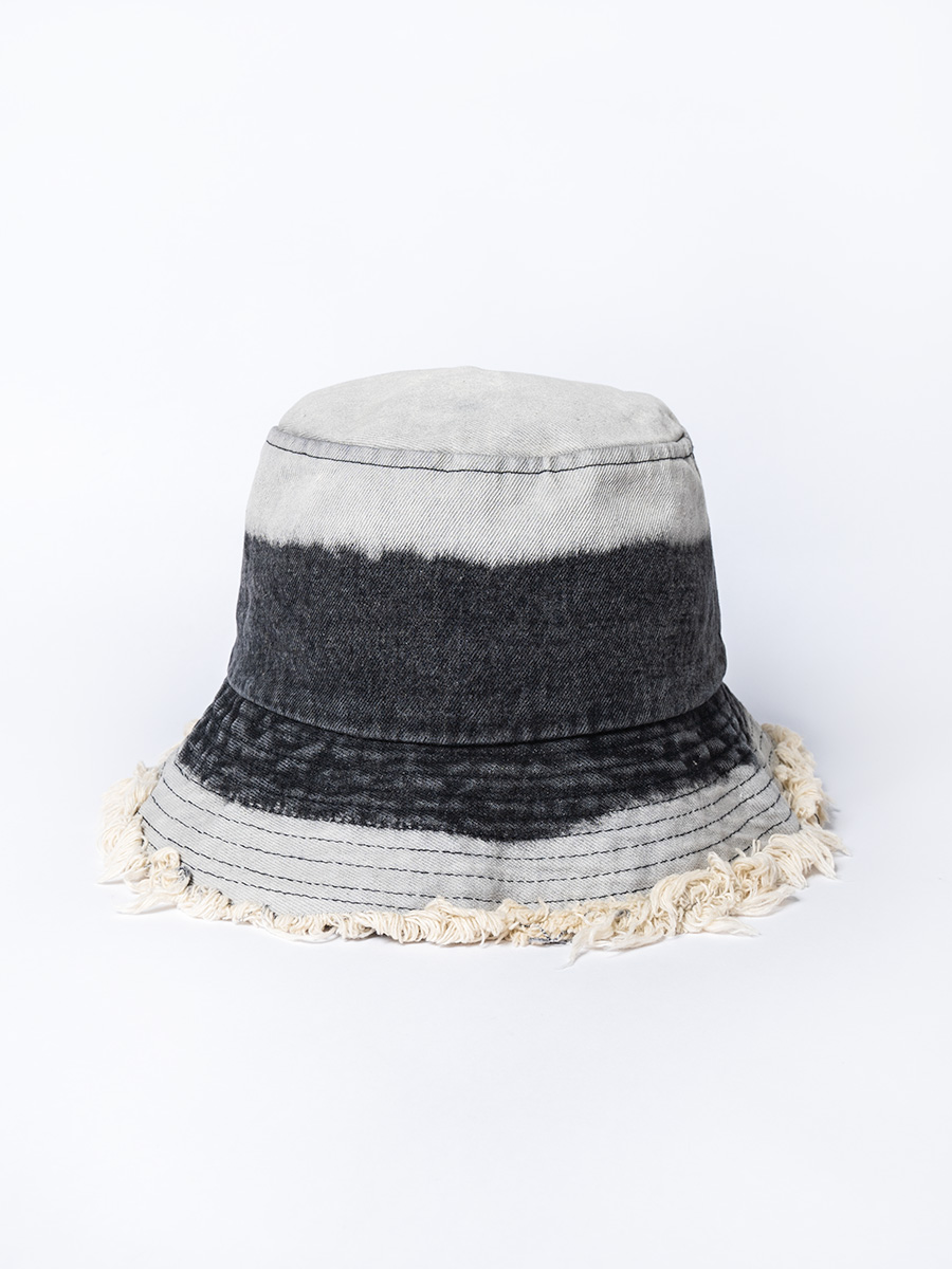ヴィンテージ風の色味とフリンジが特徴のバケットハット。