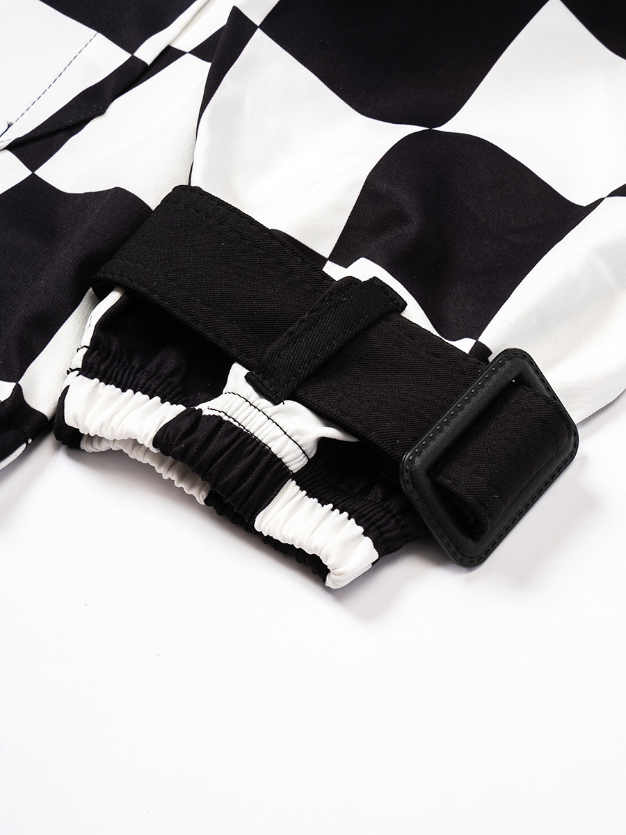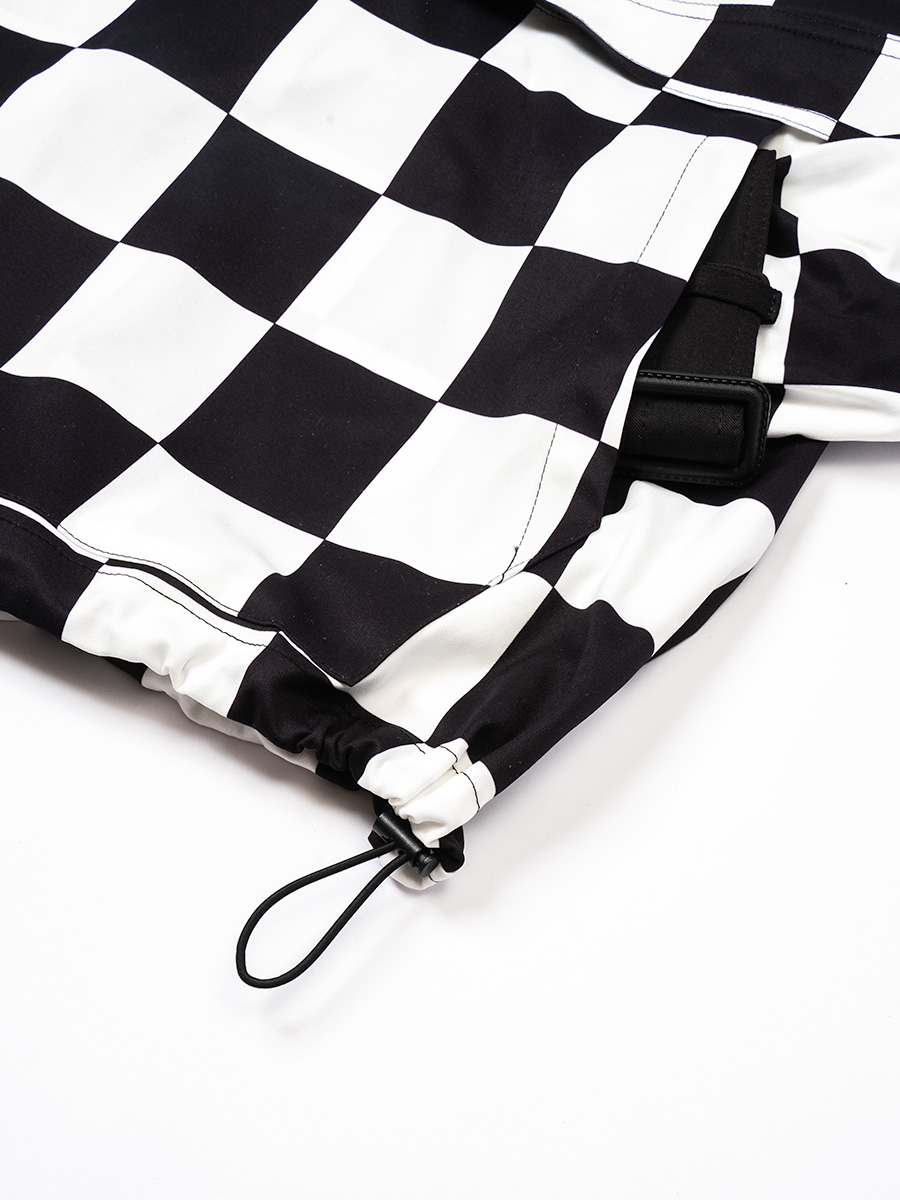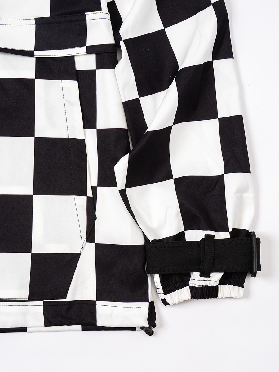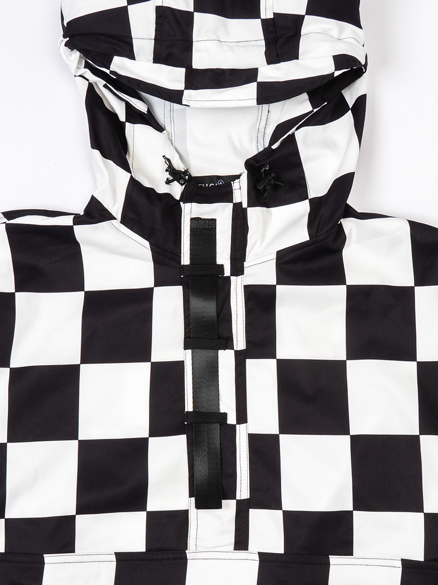 チェッカーフラッグ柄のハーフジップフーディー。