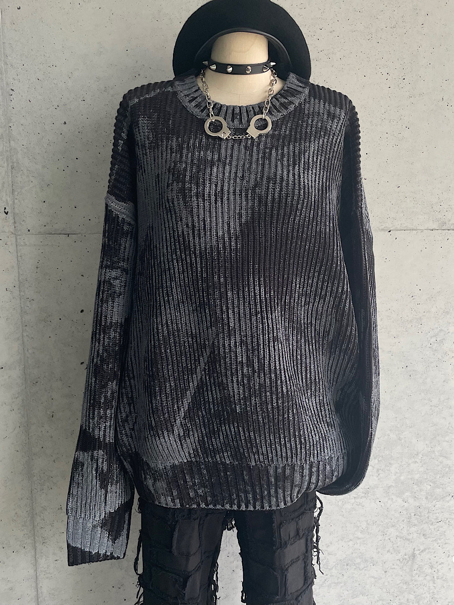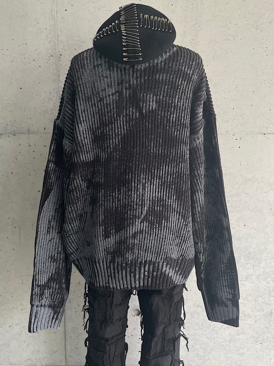 黒のニット全体に施されたペイントが目をひく個性的なデザイン☆